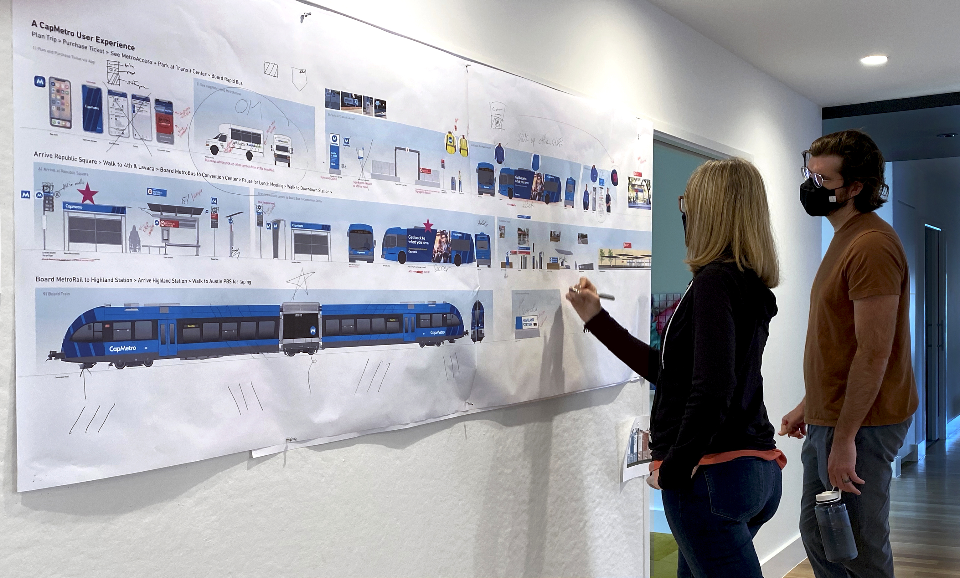 The executive team at the Capital Metropolitan Transportation Authority — locally known as CapMetro — asked us to update the system's legacy wordmark and visual brand standards. In response, we used local research, our team’s experience with public transit and complex wayfinding systems, and the extensive industry and audience knowledge of Sherry Matthews Group (CapMetro’s longtime agency of record) to create a new identity that positions CapMetro as a solidly reliable transit system critical to Austin’s growth and quality of life.