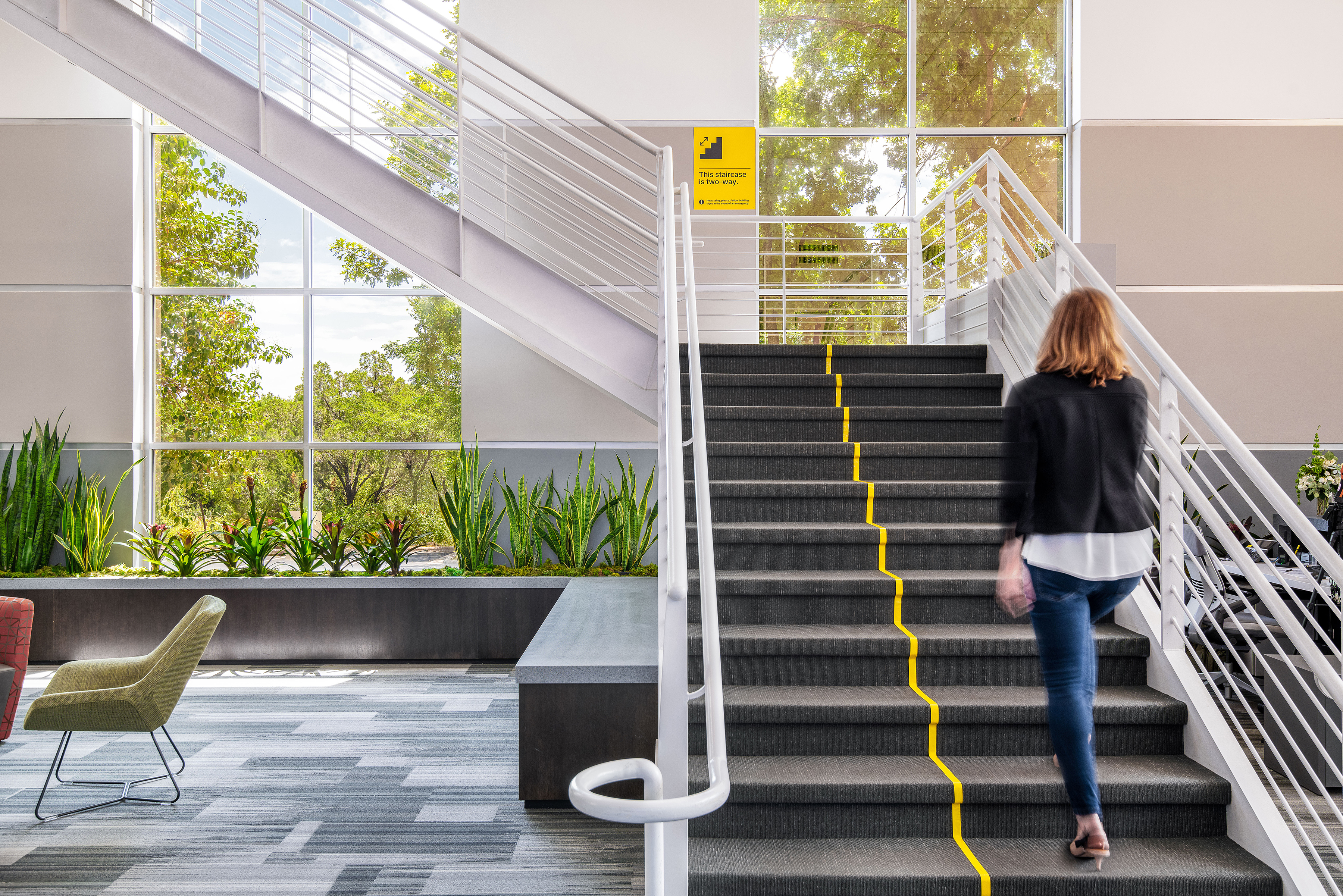 In the first weeks of the pandemic, the forward-thinking facilities team at NI (National Instruments) commissioned us to put our two decades of signage and wayfinding expertise to work on the design of a temporary signage system to be applied, produced, and rolled out very quickly to address the changing navigation needs of global HQ and its essential workers.